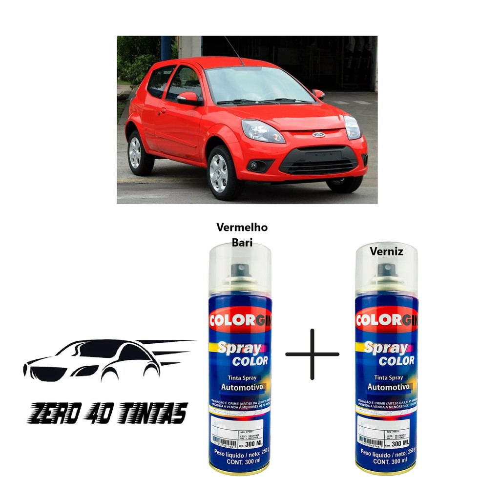 Tinta automotiva spray Vermelho Bari Ford com verniz + lixa