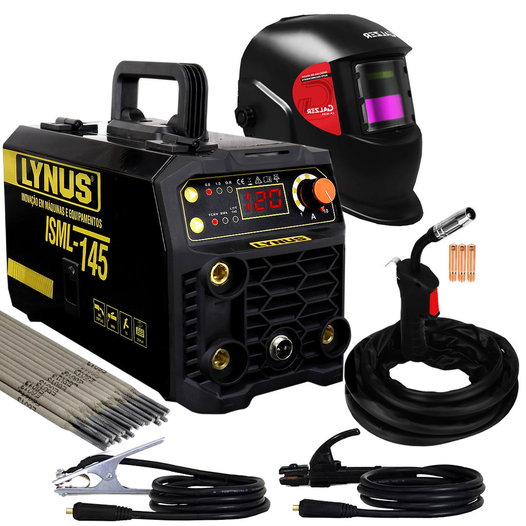 Maquina De Solda Inversora Multiprocesso Mig Sem Gás Isml 145 Tig Eletrodo 127/220v Mascara Lynus