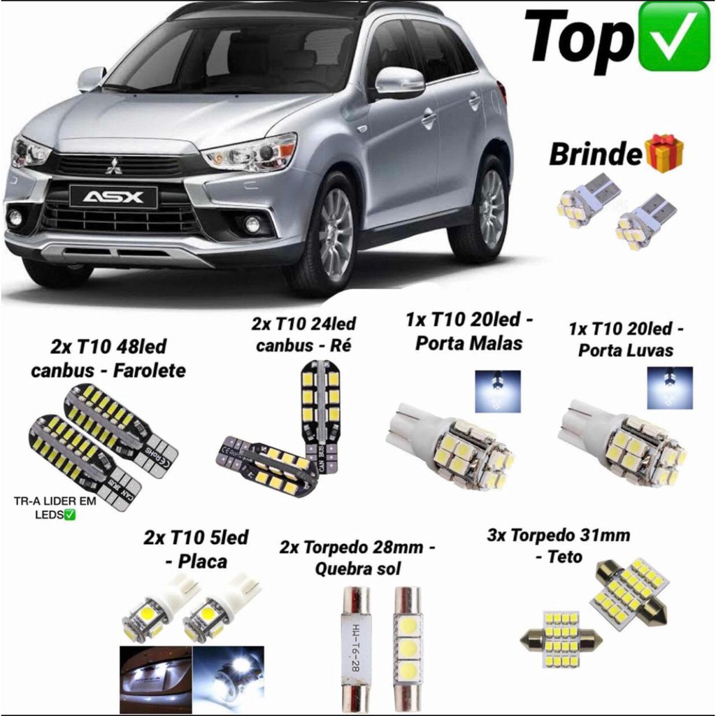 Kit Lâmpadas Led Mitsubishi ASX Ré Meia-luz Porta Malas Teto Luz Pingo Teto Placa Xenon