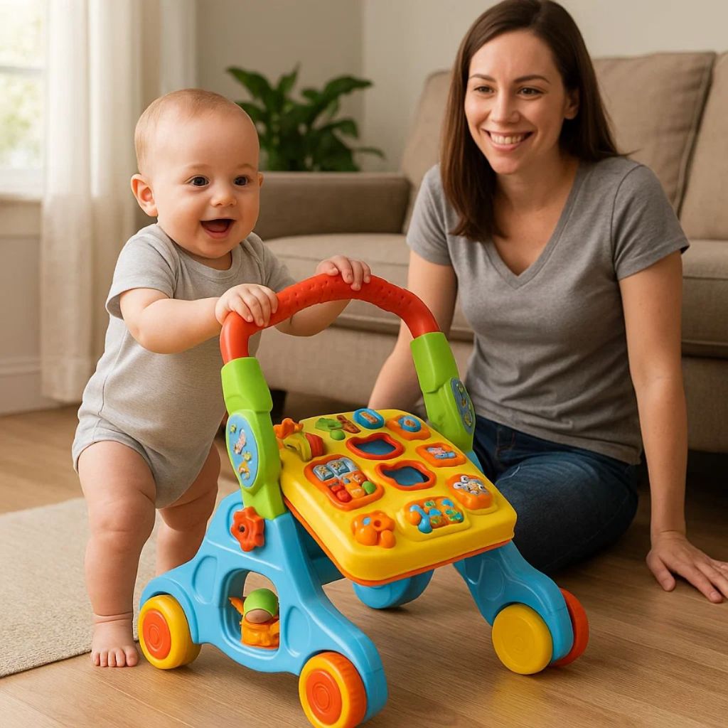Andador Bebê 4x1 Didático Mesa Atividades Painel Empurrador Som Encaixe Sensorial Educativo