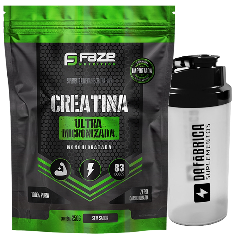 CREATINA MONOHIDRATADA 100% PURA 250G FAZE NUTRITION + COQUETELEIRA DA FáBRICA SUPLEMENTOS 600ML