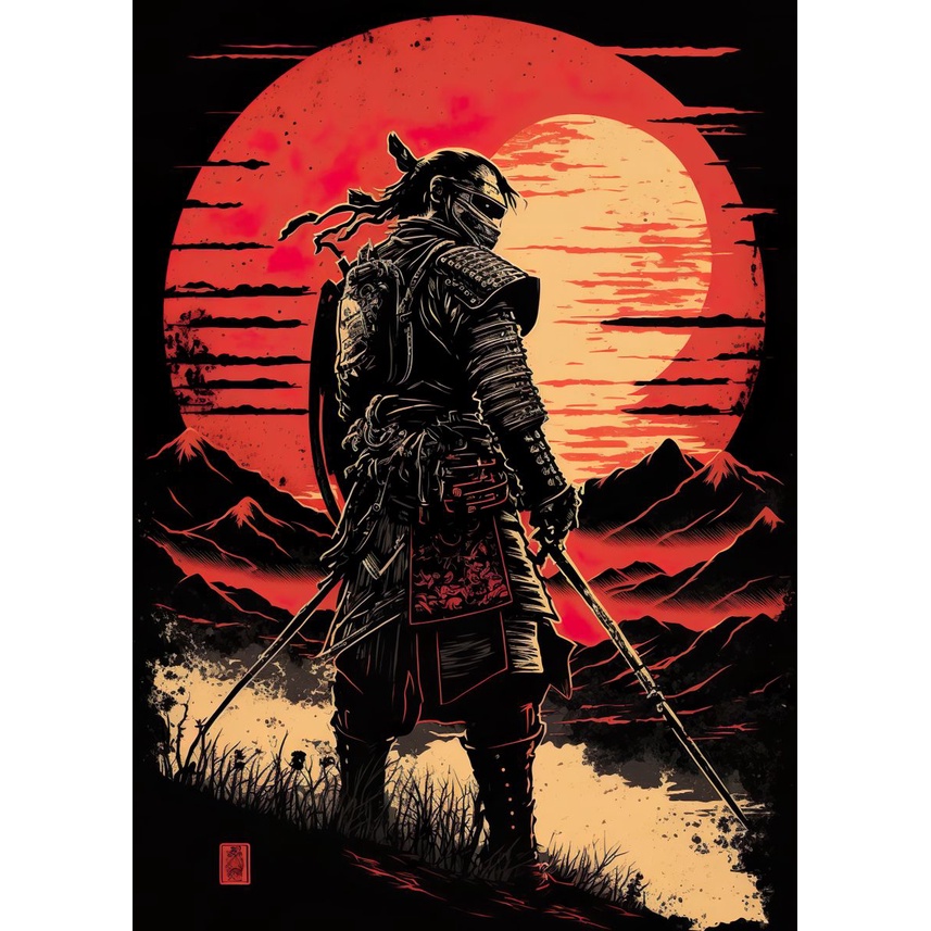 Quadro Decorativo Samurai Sakura Guerreiro, decoração casa Quadro Decorativo japonês gueixa samurai tamanho grande Decoração para sala casa cozinha quarto Quadro decorativo abstrata Moderno Decoração Sakura Guerreiro, Sunset Retro arte #06