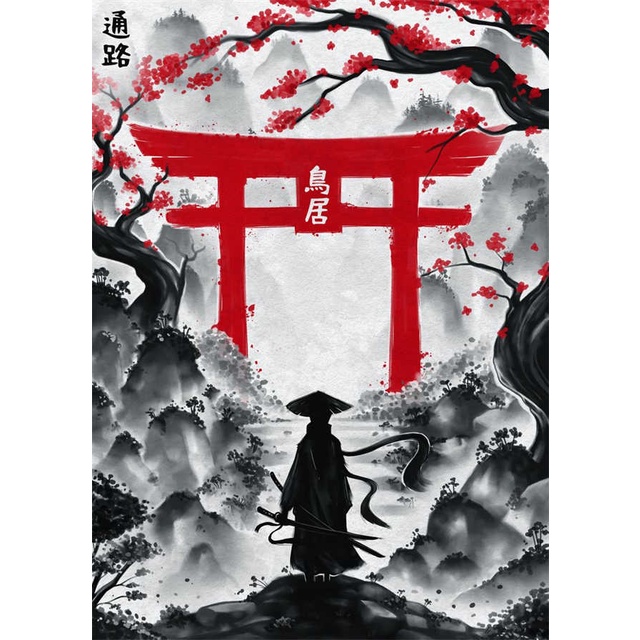 Quadro Decorativo Samurai Sakura Guerreiro, decoração casa Quadro Decorativo japonês gueixa samurai tamanho grande Decoração para sala casa cozinha quarto Quadro decorativo abstrata Moderno Decoração Sakura Guerreiro, Sunset Retro arte #59
