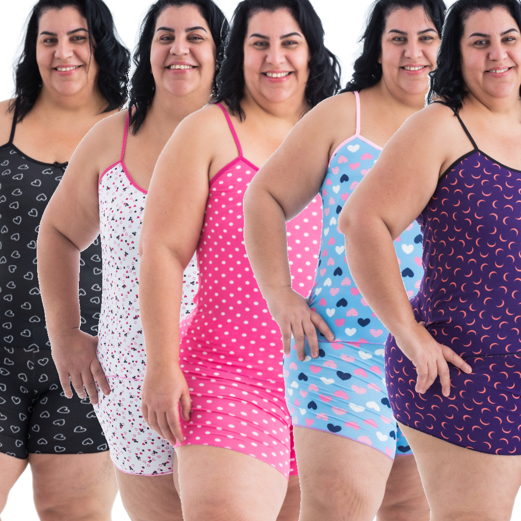 Kit 5 Conjunto Pijama Plus Size Baby Doll Short Doll Sem Bojo Feminino Original Estampas Variadas Ou Kit com 03 Conjunto