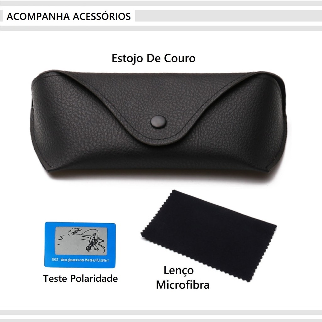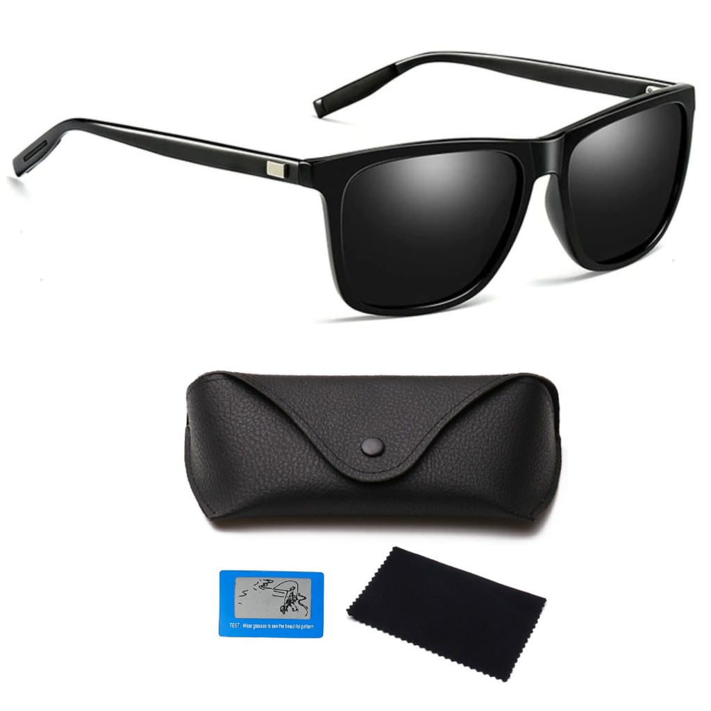 Óculos De Sol Masculino Feminino Quadrado Polarizado UV400 Preto Alumínio 6157 Original