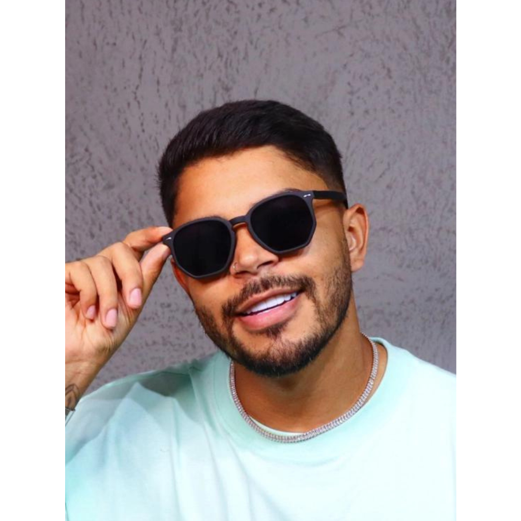 Óculos de Sol Preto Fosco Hexagonal Premium Hype Retrô Oldstyle Acessório de Moda Praia Verão uv400 Aviador Oculos de Sol Raiban Feminino Masculino Unissex - Cacife Brand