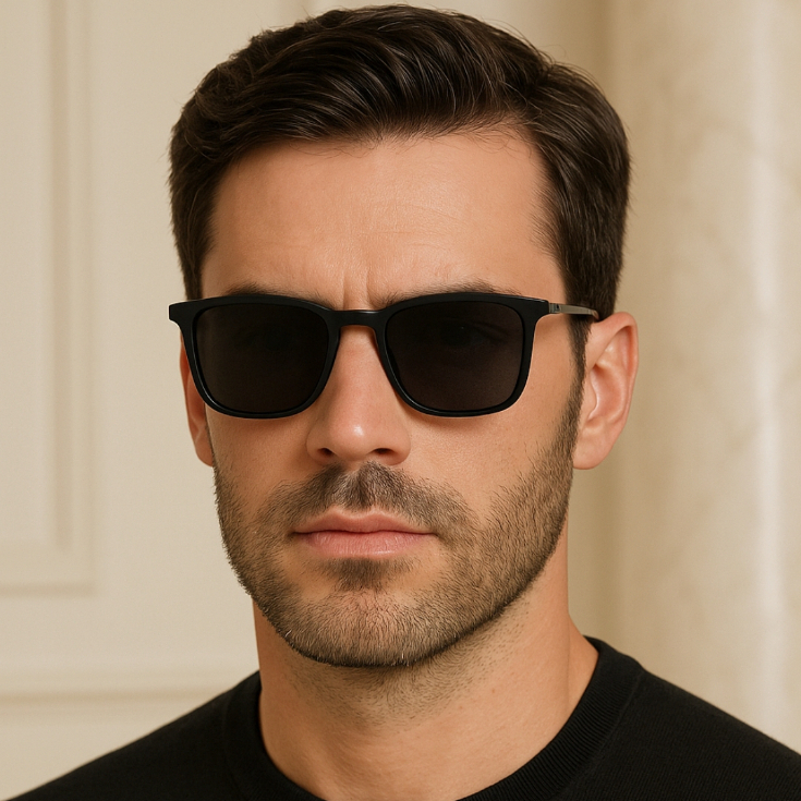 Óculos De Sol Clássico Quadrado Polarizado Masculino Preto Fosco UV400 Moda Primavera Dobradiça