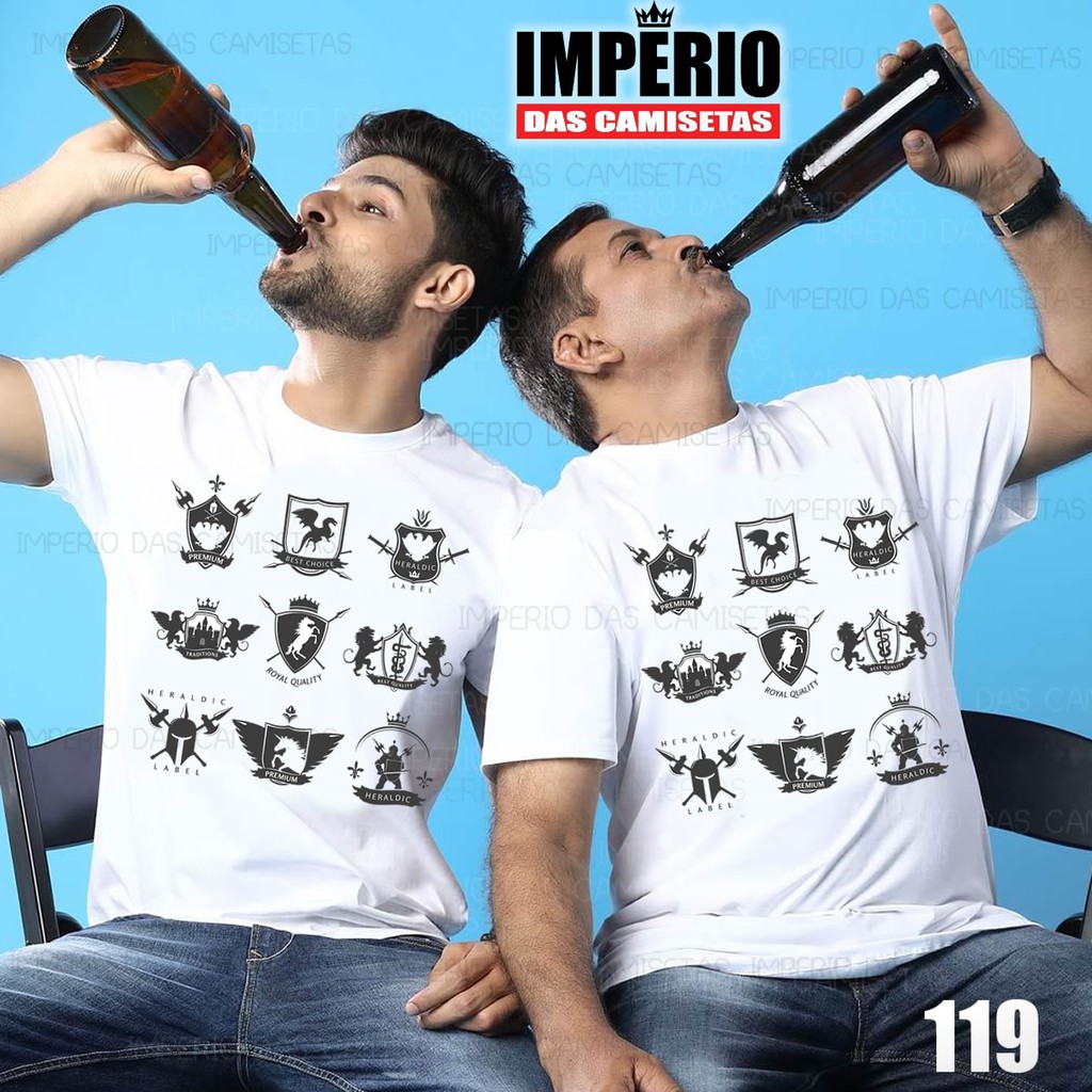 Camisetas Brancas Tal Pai Tal Filho Brasão Medieval Kit C/2 Ref 119