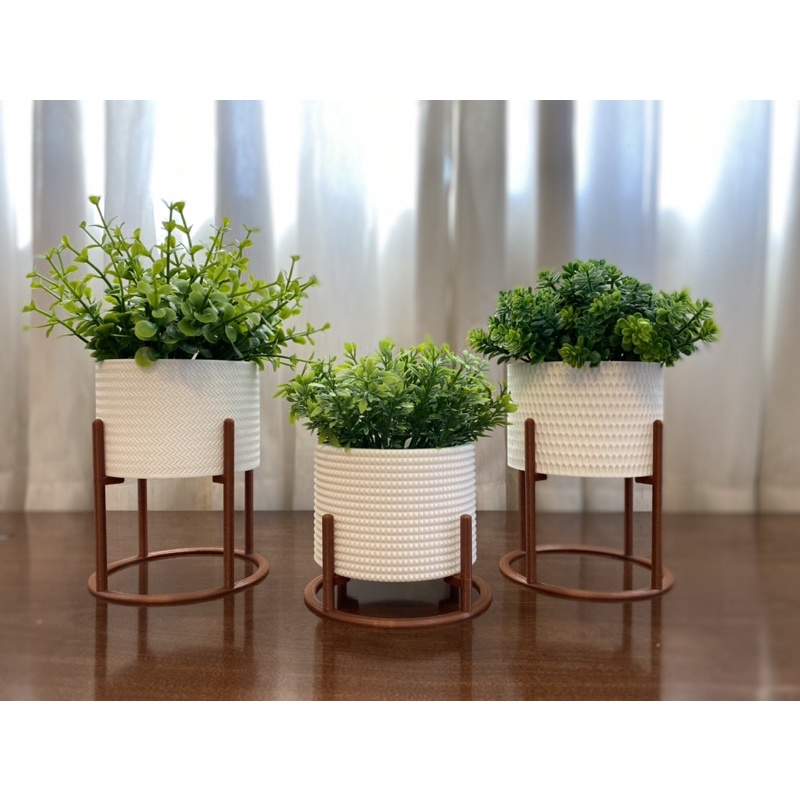 Kit 3 Vasos Cachepot Mini Decorativo Com Suporte Para Mini Cactos ou Suculentas ou Plantas Artificiais e Naturais