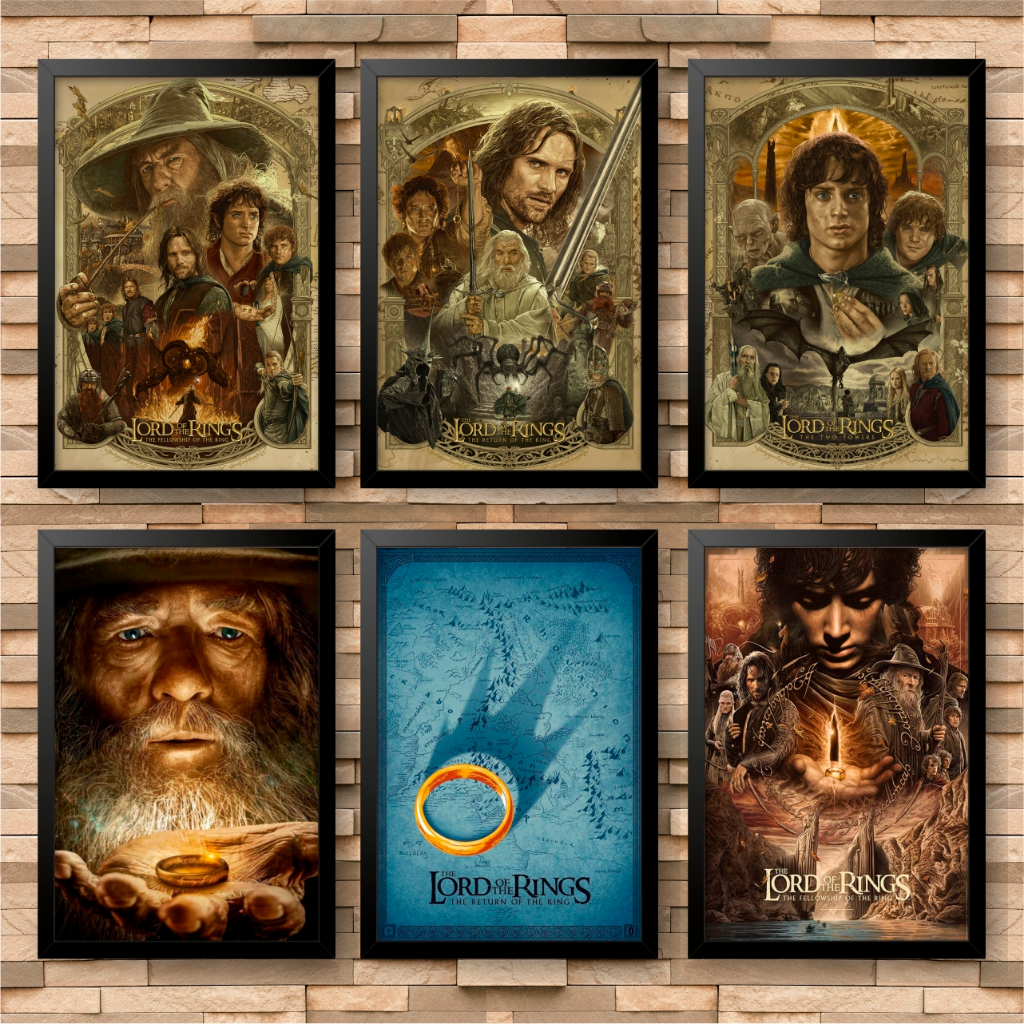 Quadro decorativo com moldura e vidro O Senhor dos Anéis Gandalf Aragorn filme pôster geek nerd