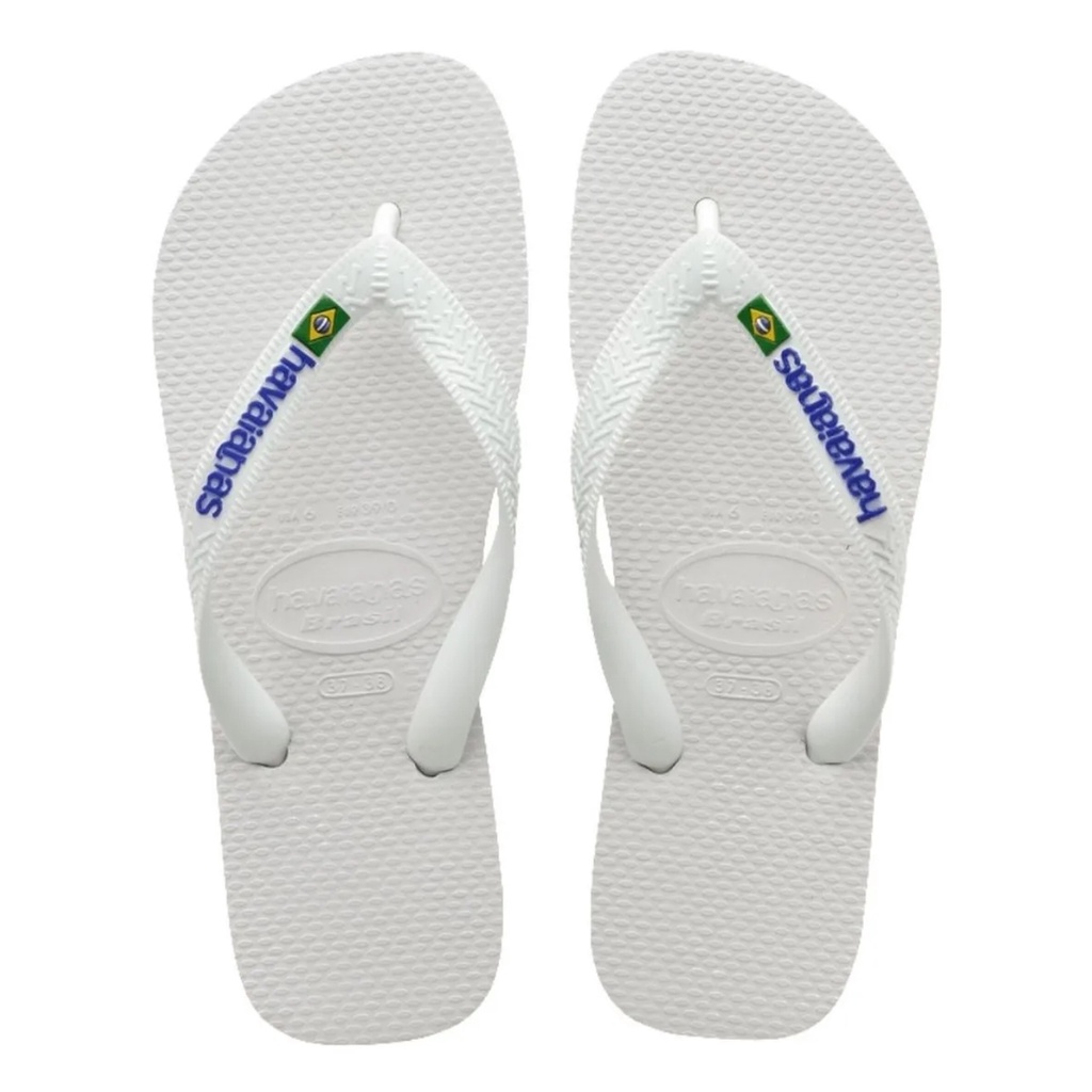 Chinelo Havaianas Top Brasil Branco com logo azul