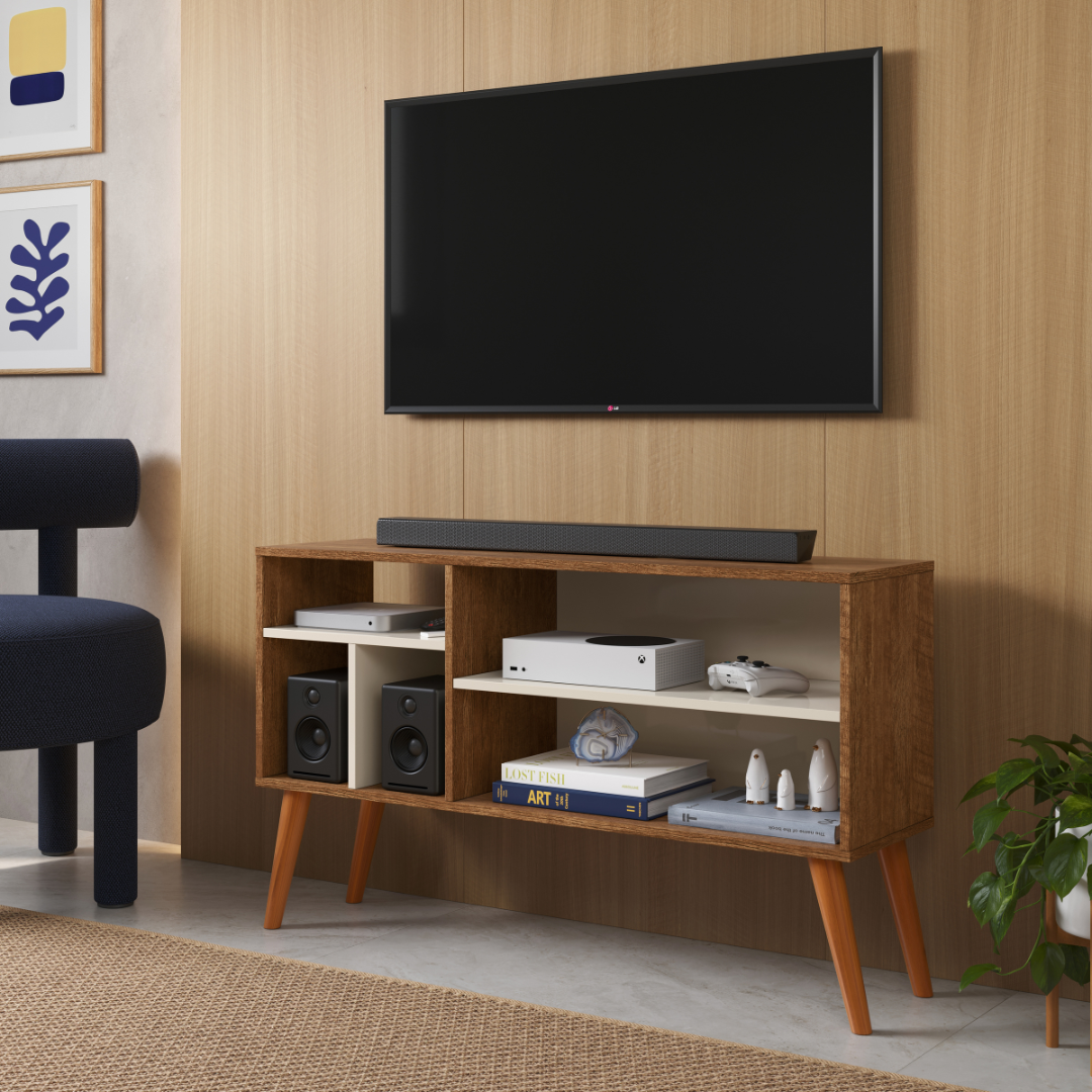 Rack Nature / Off White Estante para Sala de Estar Pés em Madeira
