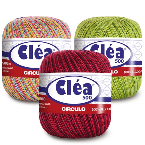 Linha Clea 500 Metros, 100% Algodão e 151 TEX Circulo Cores Lisas e Mescladas para Crochê, Tricô, Bico, Barrado, Bordado e Artesanato