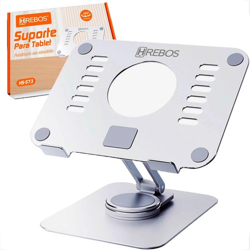 Suporte Giratório 360° De Alumínio Pra Tablet e iPad Ate 12 Pregada HREBOS HS-573