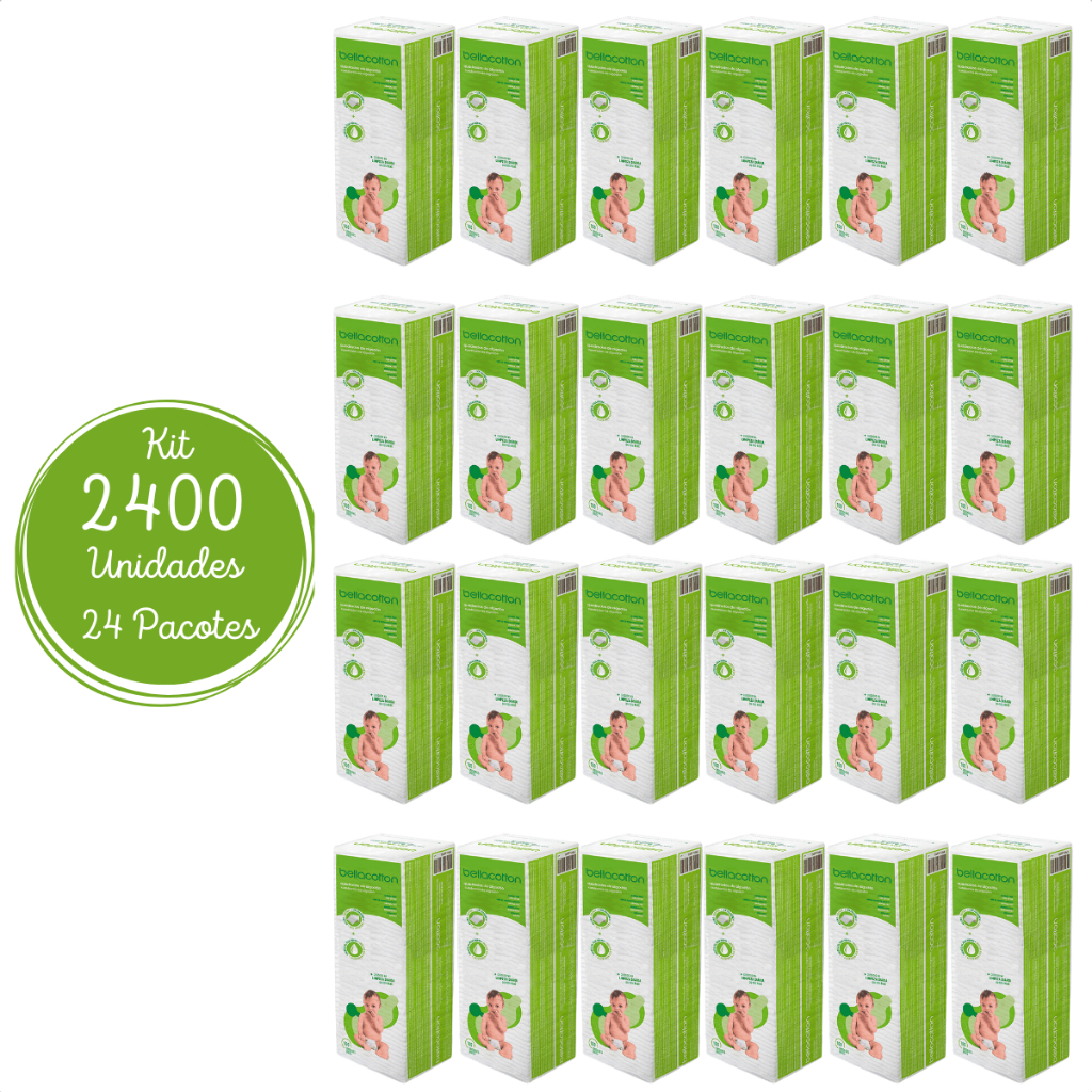 Kit com 2400 Lenços de Algodão Bellacotton Baby – 24 Pacotes com 100 Unidades Cada