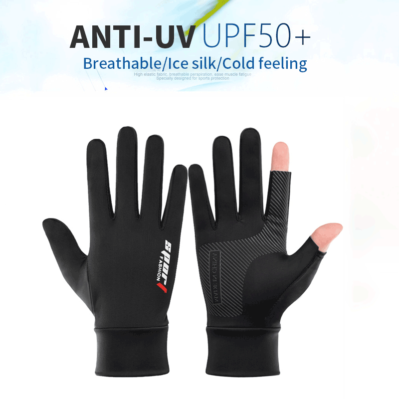 Protetor Solar Luvas De Ciclismo Ice Silk Touch Screen Dew Dois Dedos Fitness Exterior Condução De Pesca