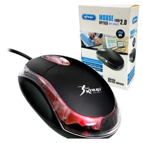 Mouse KUNP USB óptico com LED MINI PRETO