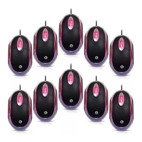 KIT 10UN Mouse USB com LED 1000Dpi mini ms-9 exbom preto