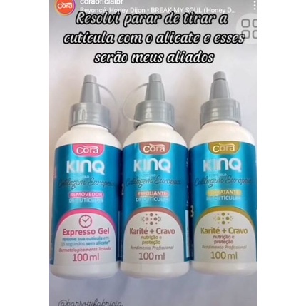 Kit Completo para Cutículas Kinq Removedor + Esfoliante + Hidratante 100ml Cora