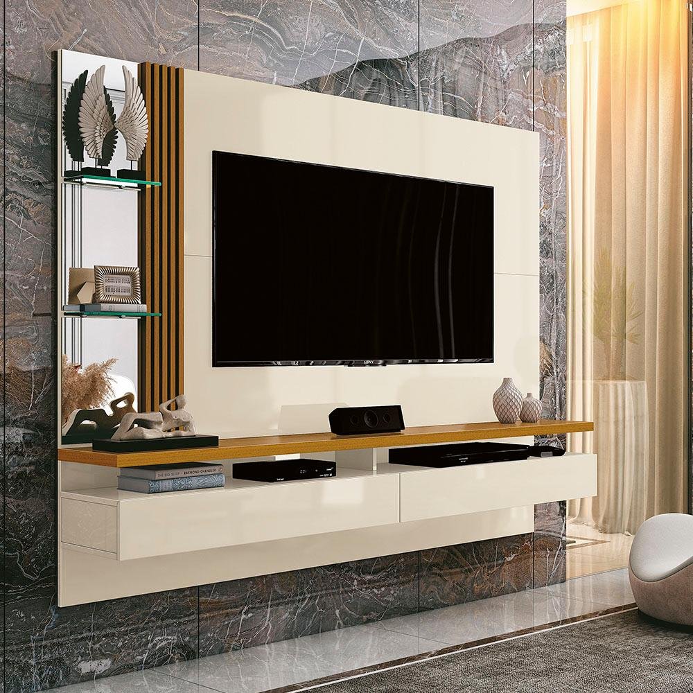 Rack com Painel Ripado Suspenso para TV até 70 Polegadas 2 Portas Grécia 180cm - Off White e Nature