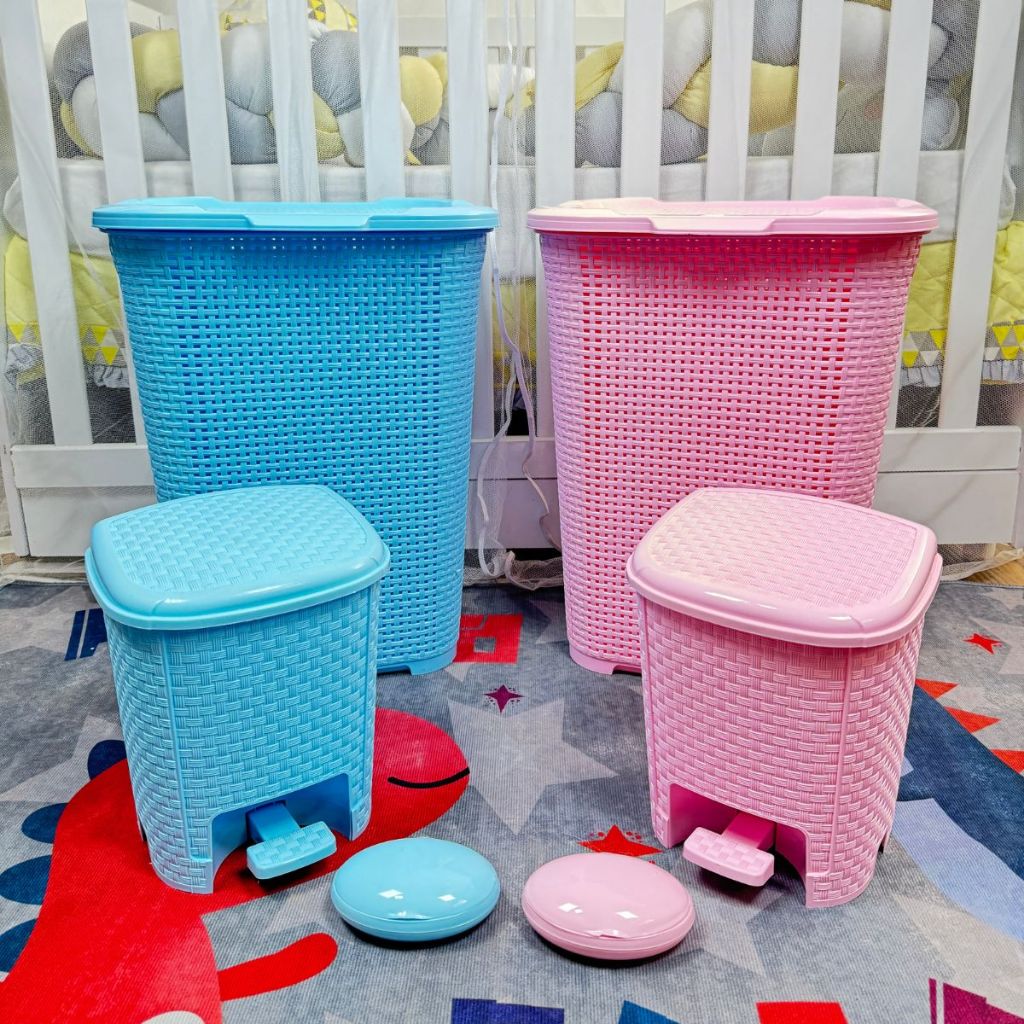 Conjunto de Banheiro Infantil Baby Com Lixeira 6L Cesto de Roupa 30L e Saboneteira oval ROSA E AZUL
