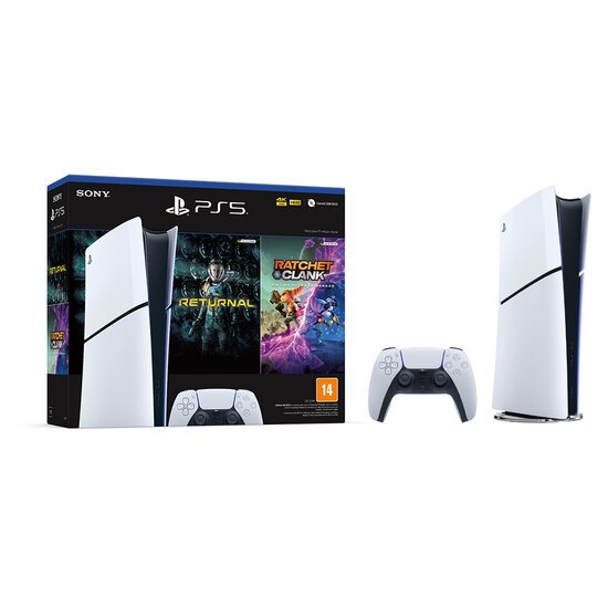 PlayStation 5 Sony 1T Slim Digital + 2 Jogos (Returnal e Ratchet Clank)