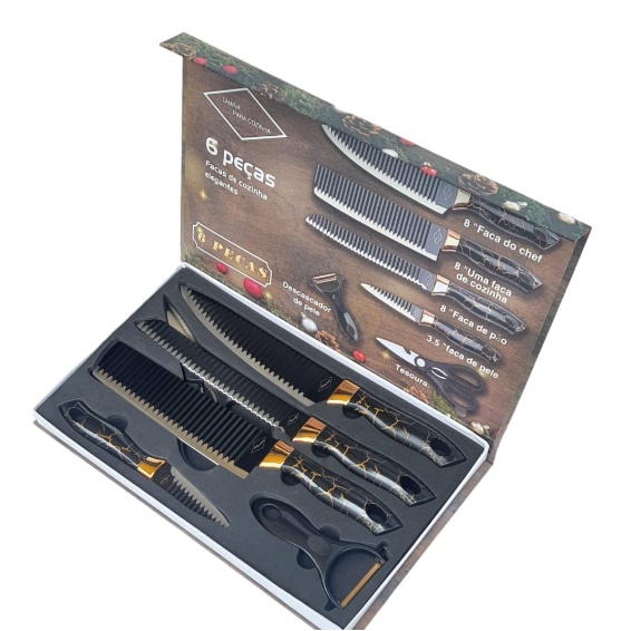 Kit de Facas com Descascador de Legumes e tesoura C/6 Pçs - *Culinária Aço inoxidável primicias hq