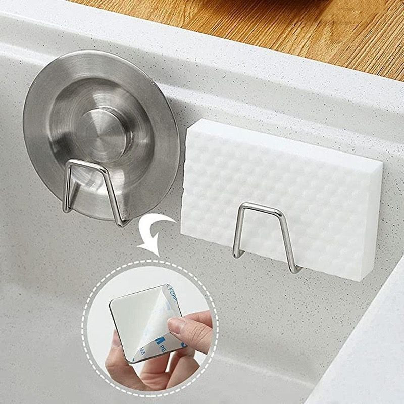 Kit 2 Gancho Aço Inoxidável com Adesivo para Esponja de Cozinha