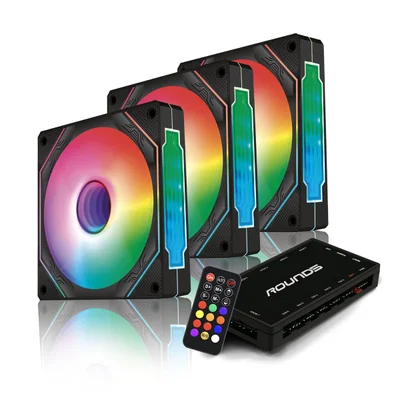 Kit 3 Fan 120mm Round5 Aurora Forward Com Controladora ARGB Preto R5-kit-aurora-fw-b-2219