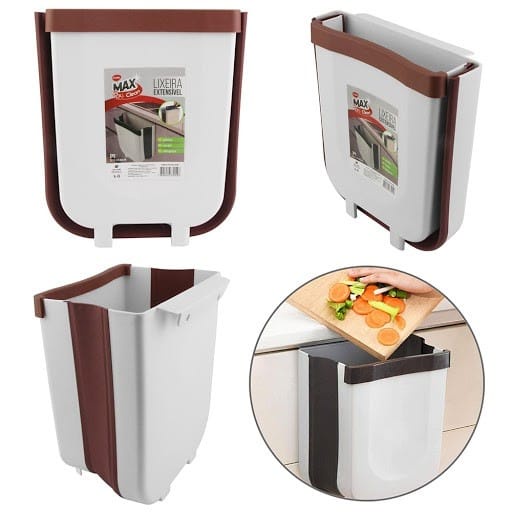 Lixeira Dobrável de Pia Extensível Retrátil com Suporte de Pendurar