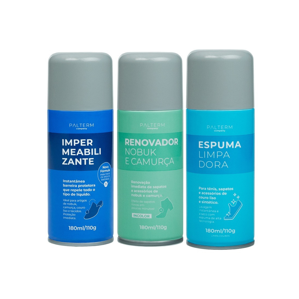 Kit Espuma Limpadora, Renovador e Impermeabilização para Calçados Nobuck e Couro Incolor