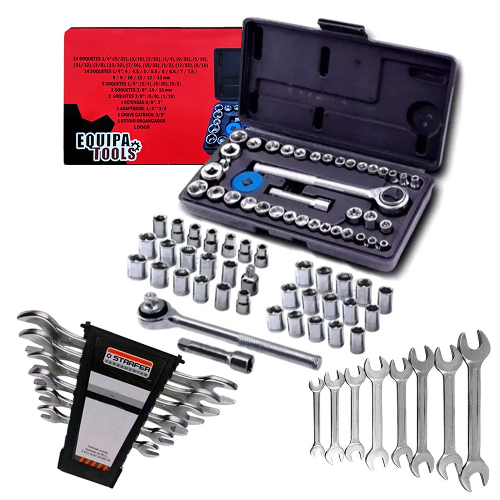 Kit Jogo De Ferramentas 46 Pçs Completo Soquete Chave Fixa