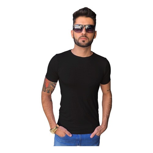 Camisa Camiseta Masculina Básica Slim Gola Redonda Justa