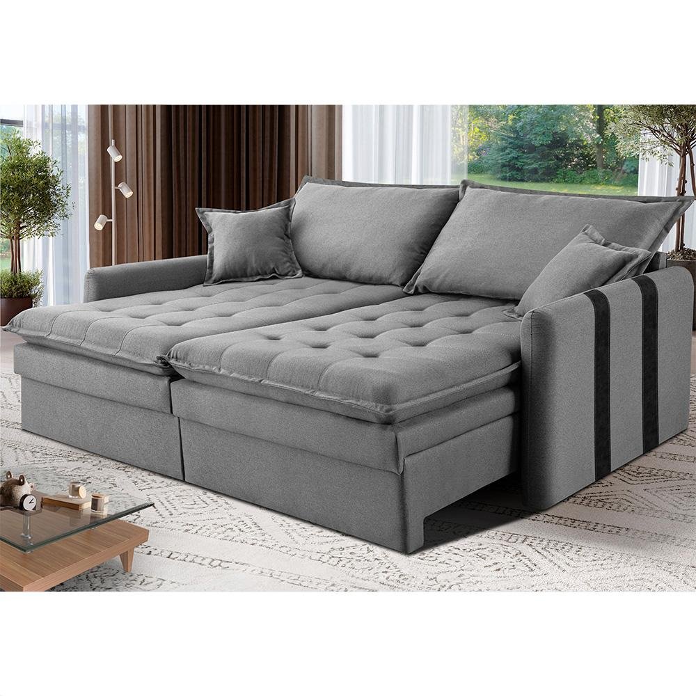 Sofá Baú sem Caixa Retrátil 2,00m Softgel Bonnie Linho Cinza Claro Cama Inbox