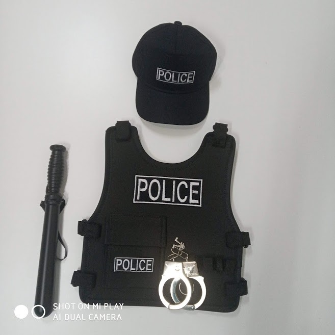 Brinquedo Kit Policial Fantasia Com Arma Capacete Colete E Acessórios Dudubrinq