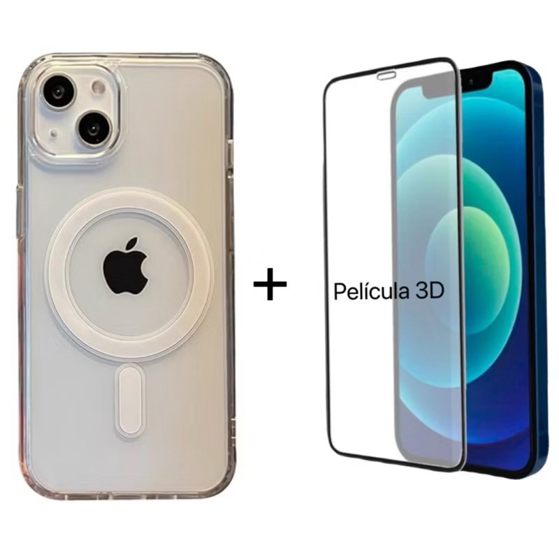 Kit Capinha Magnética Magsafe transparente + Película 3d Para iPhone 17 11 12 13 14 15 16 Pro ProMax Plus XR 16E Air