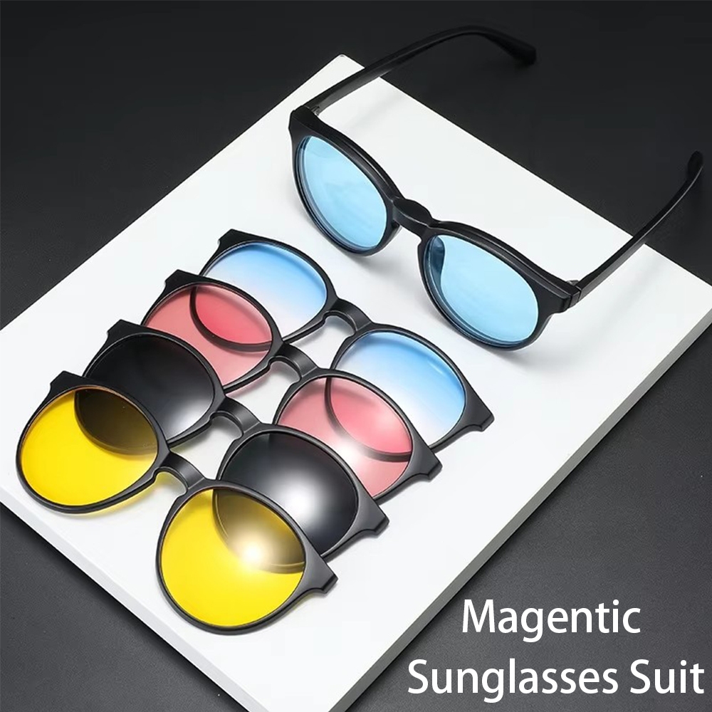 Óculos De Sol Com Armação Para Lente De Grau Com Lentes Clip On Clipon Magnético Imã 6 Em 1 Polarizado
