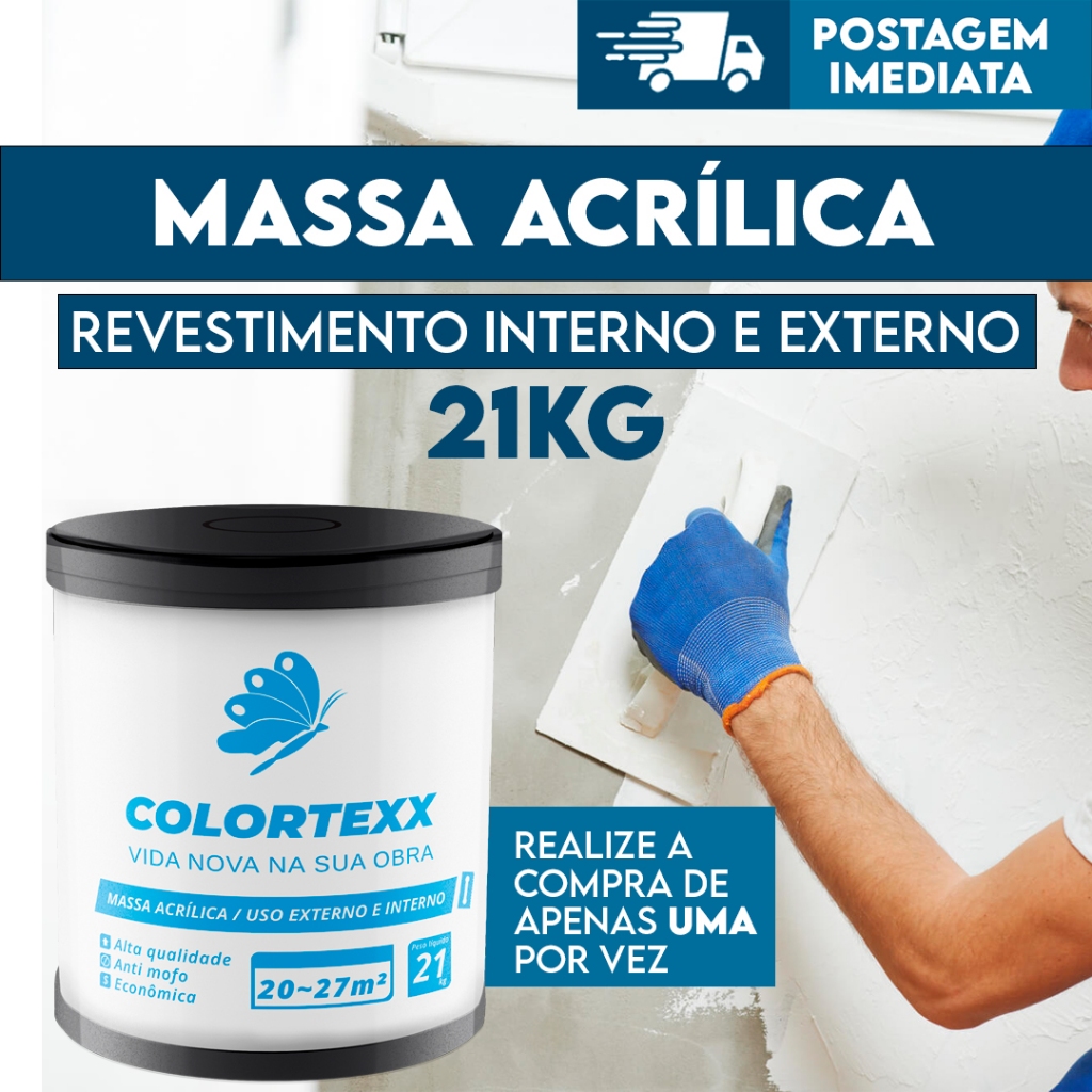Massa Acrílica Premium 21kg Externo & Interno Acabamento Fácil Aplicação - Colortexx branca parede
