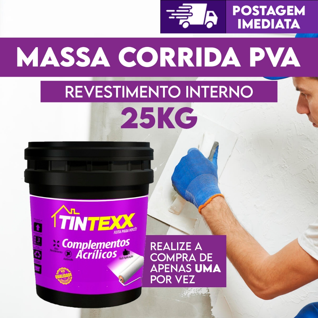 Massa Corrida 25kg Tintexx Premium Pva Acabamento Nivelador Fácil Aplicação branca parede