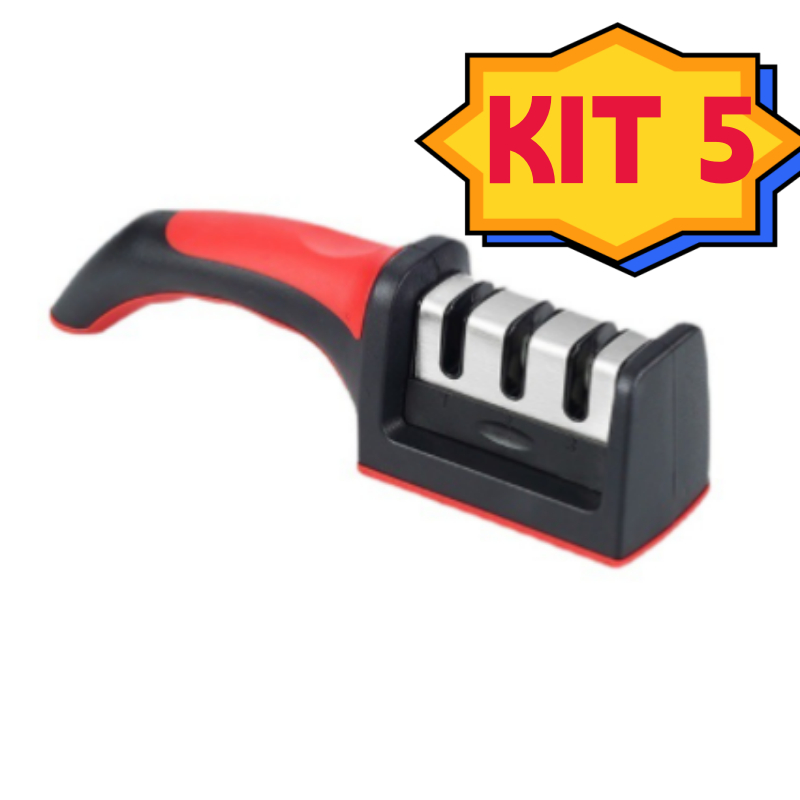 5 Unidade Afiador Amolador De Facas Em Aço Inox Com 3 Borda Profissional Base Emborrachado Promoção