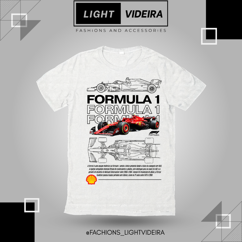 Camiseta Fórmula 1 F1 Ferrari Unissex Camisa F1 Red Bull Estampa Carro de Corrida Algodão Premium | Cores Branco e bege