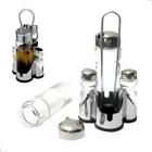 Galheteiro Vidro e Inox Com Suporte Kit 5 Peças Azeite Vinagre Saleiro Pimenteiro Restaurante Premium
