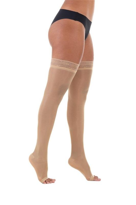 Meia coxa 7/8 Dynaven Basic Sigvaris 20-30mmHg Média Compressão Bege Ponteira Aberta