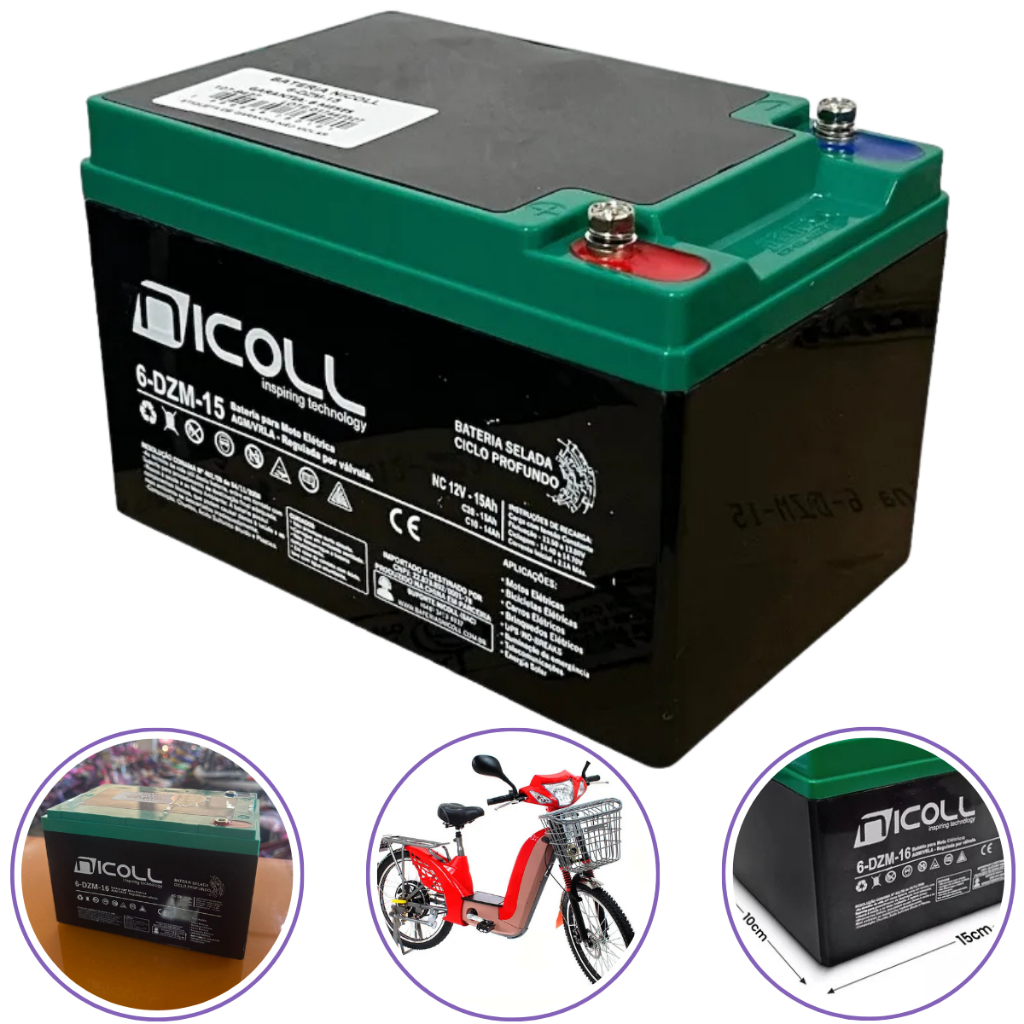 Bateria Nicoll 12v 16ah Ciclo Profundo Bike Eletrica Patinete Elétrico Ciclomotor e Monociclos