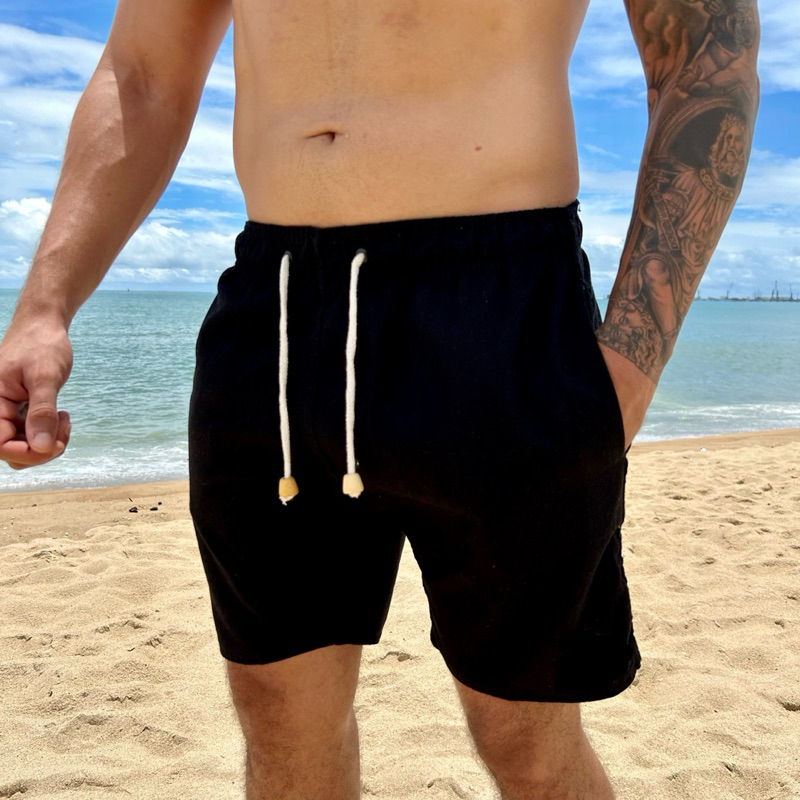 Kit com 3 Short Linho Masculino Premium Básico Mauricinho Bermuda Casual
