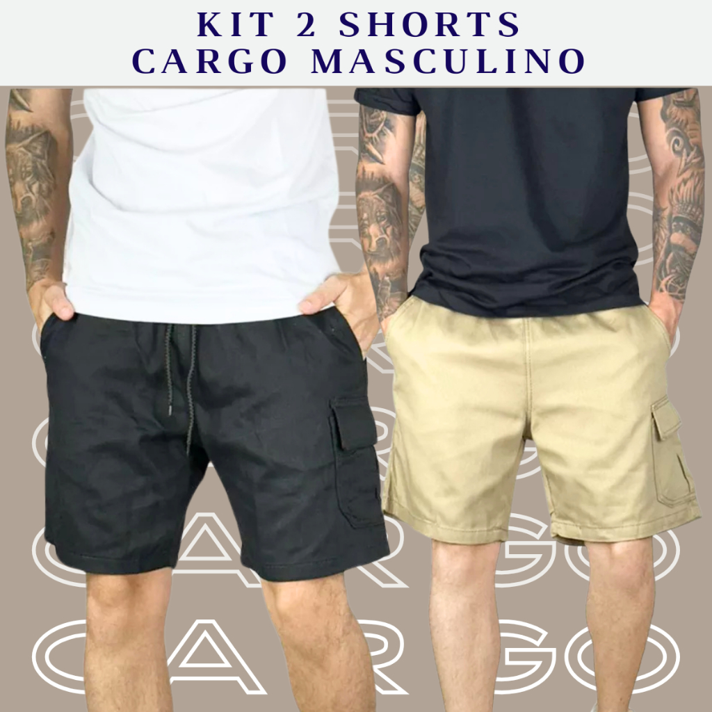 Kit 2 Bermuda Short Cargo Masculino Casua com Bolsos Laterais Lançamento Diversas Cores Street Curto