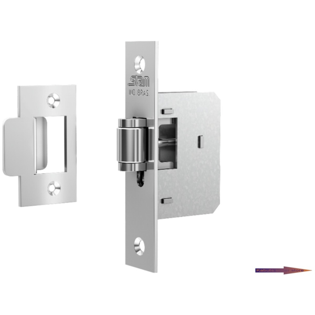Fechadura Stam 1006S WC para porta de correr embutir com puxador de dedo e espelho retangular para banheiro