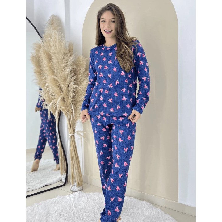 Pijama Feminino de Frio Suede Estampado com Manga Longa – Conforto e Estilo