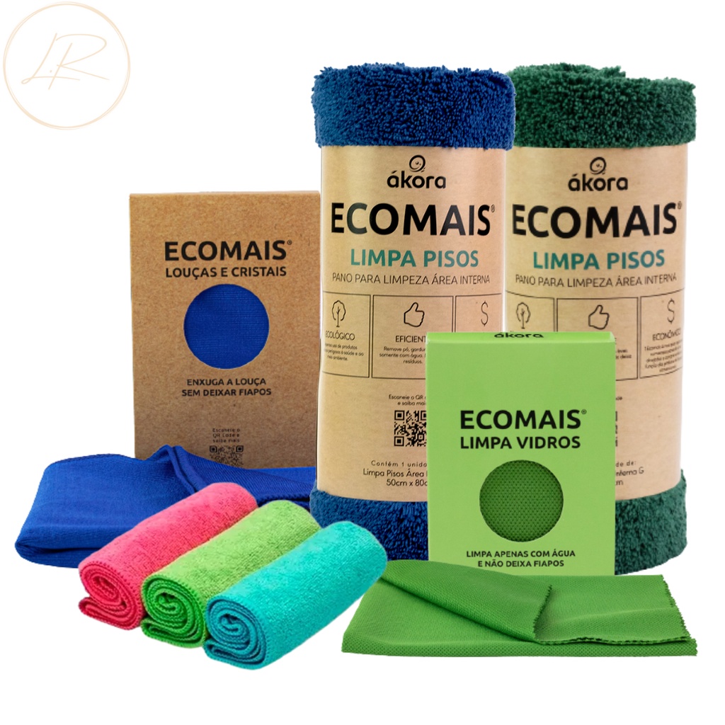 Kit Panos de Limpeza Ákora Ecomais 2 Limpa Pisos G 1 Louças e Cristais 1 Vidros e Inox 3 Pano Mágico