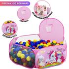 Piscina Infantil de Bolinha com 50 Bolinhas Coloridas Estampada de Unicórnio Rosa Dobrável Portátil